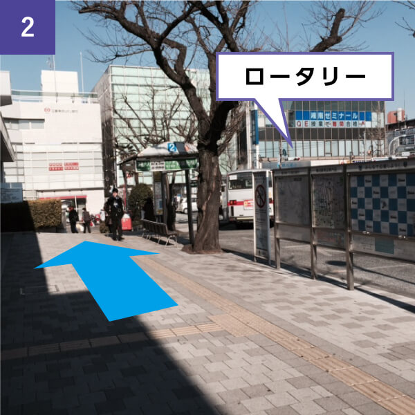 鷺沼駅正面口前のロータリーに向かって左方向に行きます。