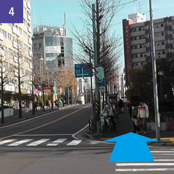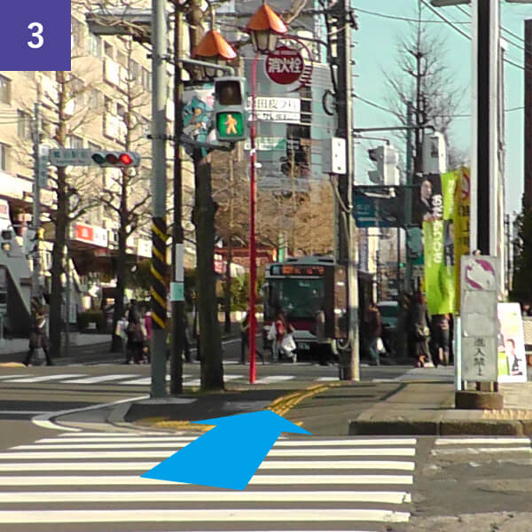 駅前の横断歩道を渡ります。