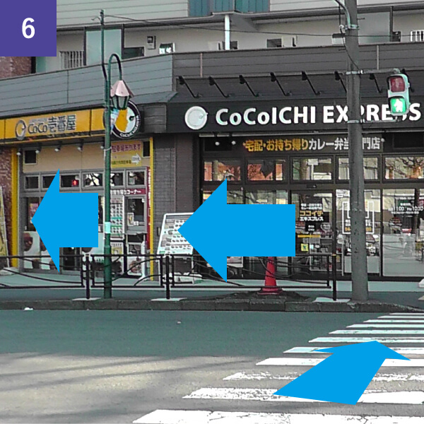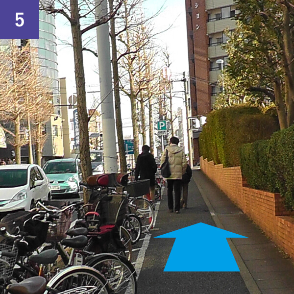 「鷺沼交番前」横断歩道を渡り、飲食店の横を通りさらに直進します。