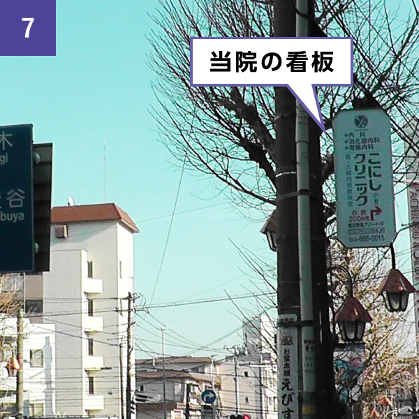 直進すると「こにしクリニック」の看板が頭上に見えてきます。