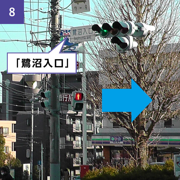 「鷺沼入口」交差点を右折します。