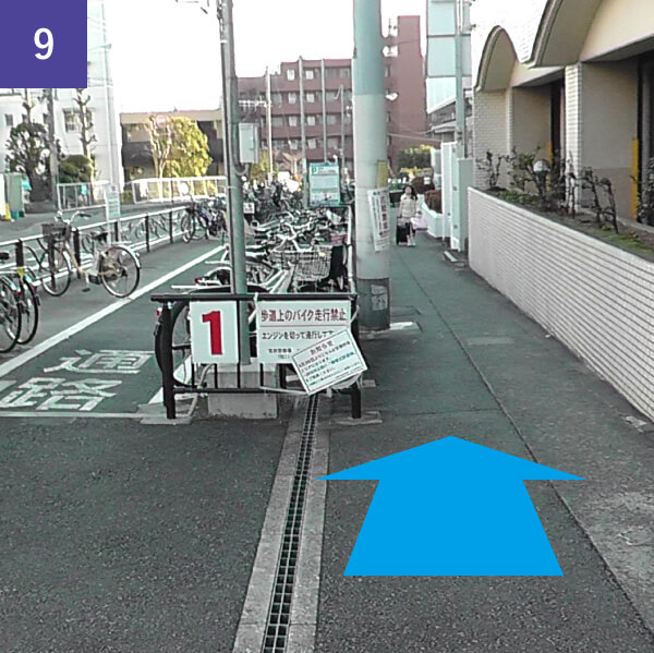 公共自電車置き場横を直進します。